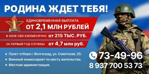 В рамках программы набора на контрактную службу в БпС предусмотрены значимые социально-экономические стимулы для будущих военнослужащих, включая денежные выплаты, надбавки и образовательные льготы. В перечне мер – федеральная единовременная денежная выплата в размере 400 тыс. рублей; региональная выплата в Волгоградской области согласно постановлению губернатора составляет 1 млн рублей; выплаты за уничтожение вооружения и военной техники противника варьируются от 5 тыс. до 500 тыс. рублей в зависимости от образца вооружения.